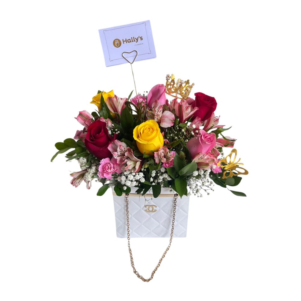 Ramo de flores blancas – 5 Rosas + Astromelias