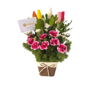 Arreglo de 8 tulipanes y flores variadas