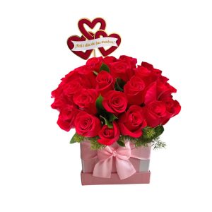 ARREGLO DE 30 ROSAS EN BOX CON TOPPER