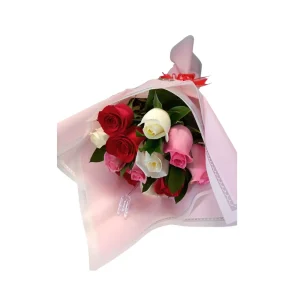 Ramo de 12 rosas rosadas blancas y rojas